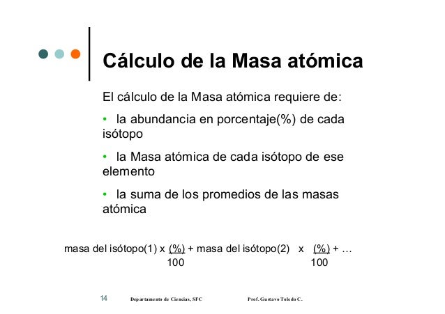 Este cálculo se realiza a partir de la masa de los isótopos y sus abundancias porcentuales de la siguiente manera: